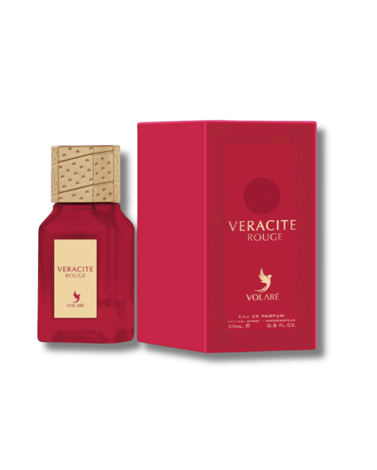 הבושם וולארה ורסיטה רוז' (Volare Veracite Rouge) הוא יצירת מופת ריחנית המיועדת לאישה. הניחוח נפתח בפרץ רענן ופירותי של אגס עסיסי, דומדמניות שחורות ונגיעה מתובלת של פלפל ורוד, המעניקים פתיחה מסקרנת ומלאת חיים. לב הבושם חושף זר פרחים עשיר ורומנטי, המשלב את הנשיות הקלאסית של ורד, העדינות של יסמין והמתיקות האבקתית של הליוטרופ. תווי הבסיס מעניקים עומק וחמימות חושנית עם וניל מתוק, עץ ארז אלגנטי ואמברווד עשיר, היוצרים שובל בלתי נשכח שנשאר על העור לאורך זמן.